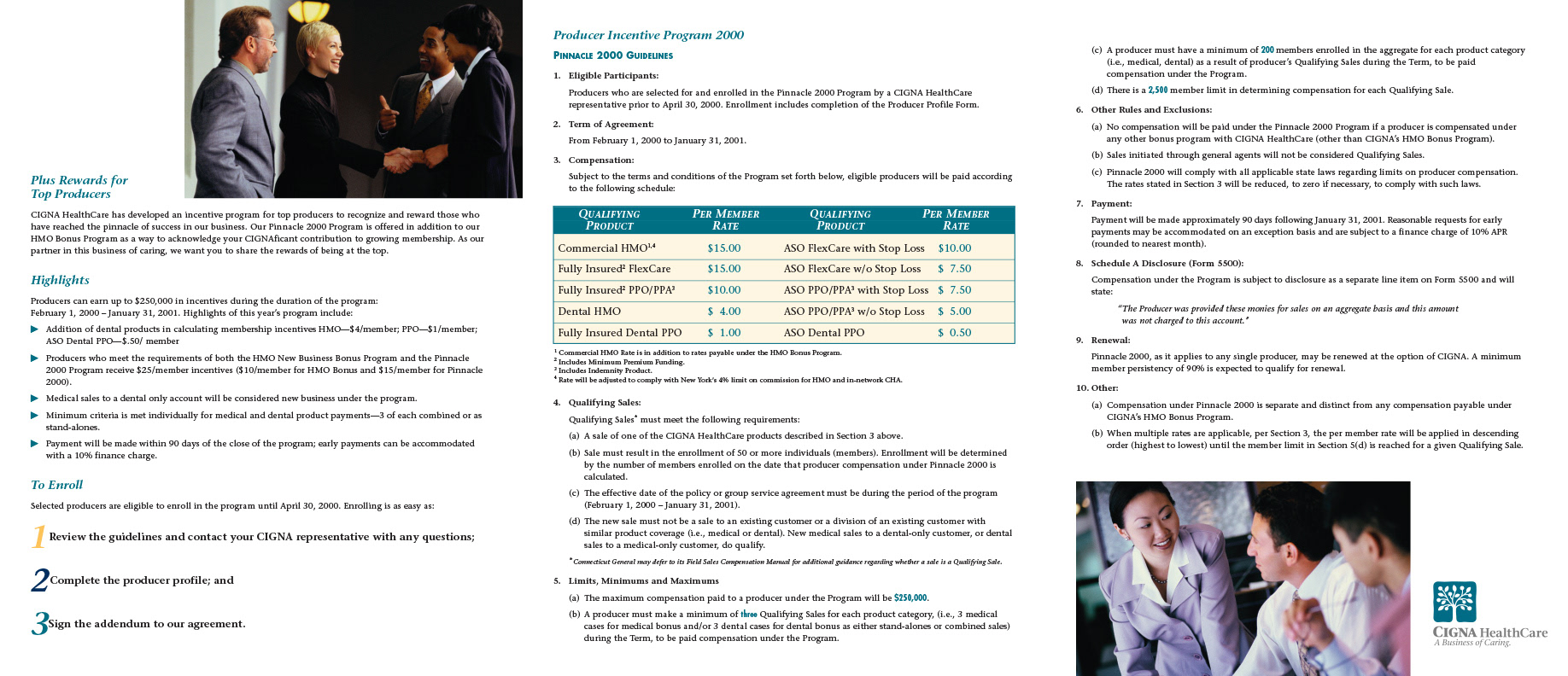 Working within CIGNA's brand guidelines, I designed and laid out this three-panel folding brochure. It was an internal piece aimed at the company's sales reps.